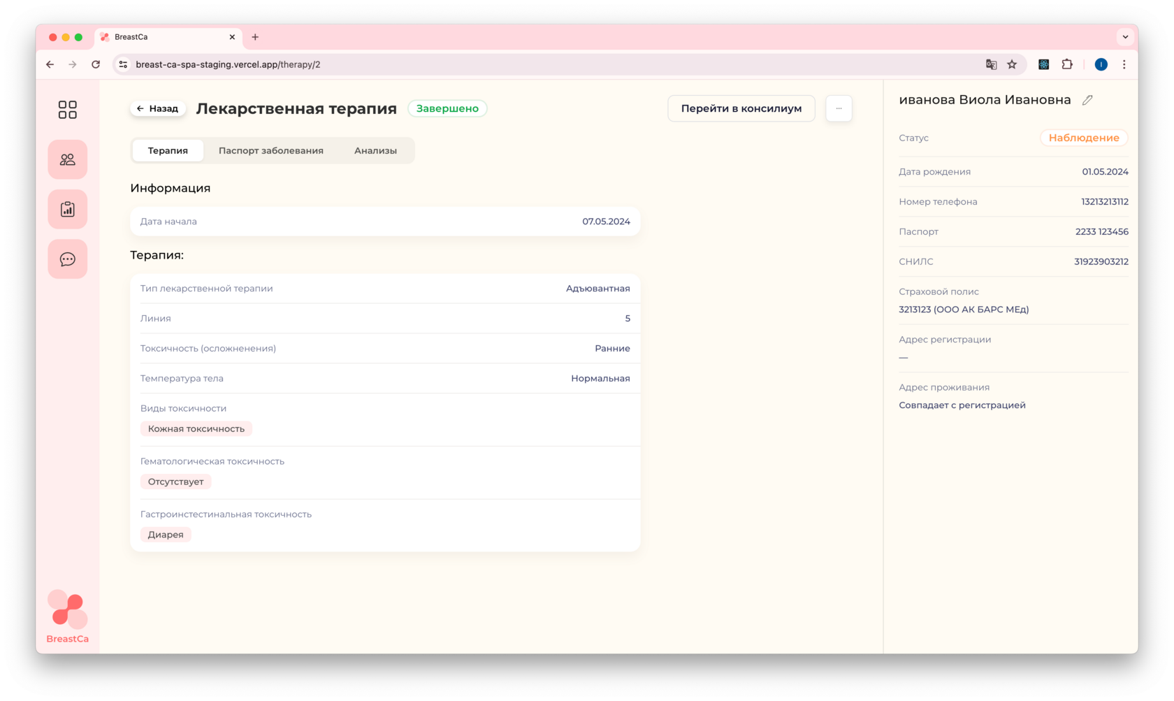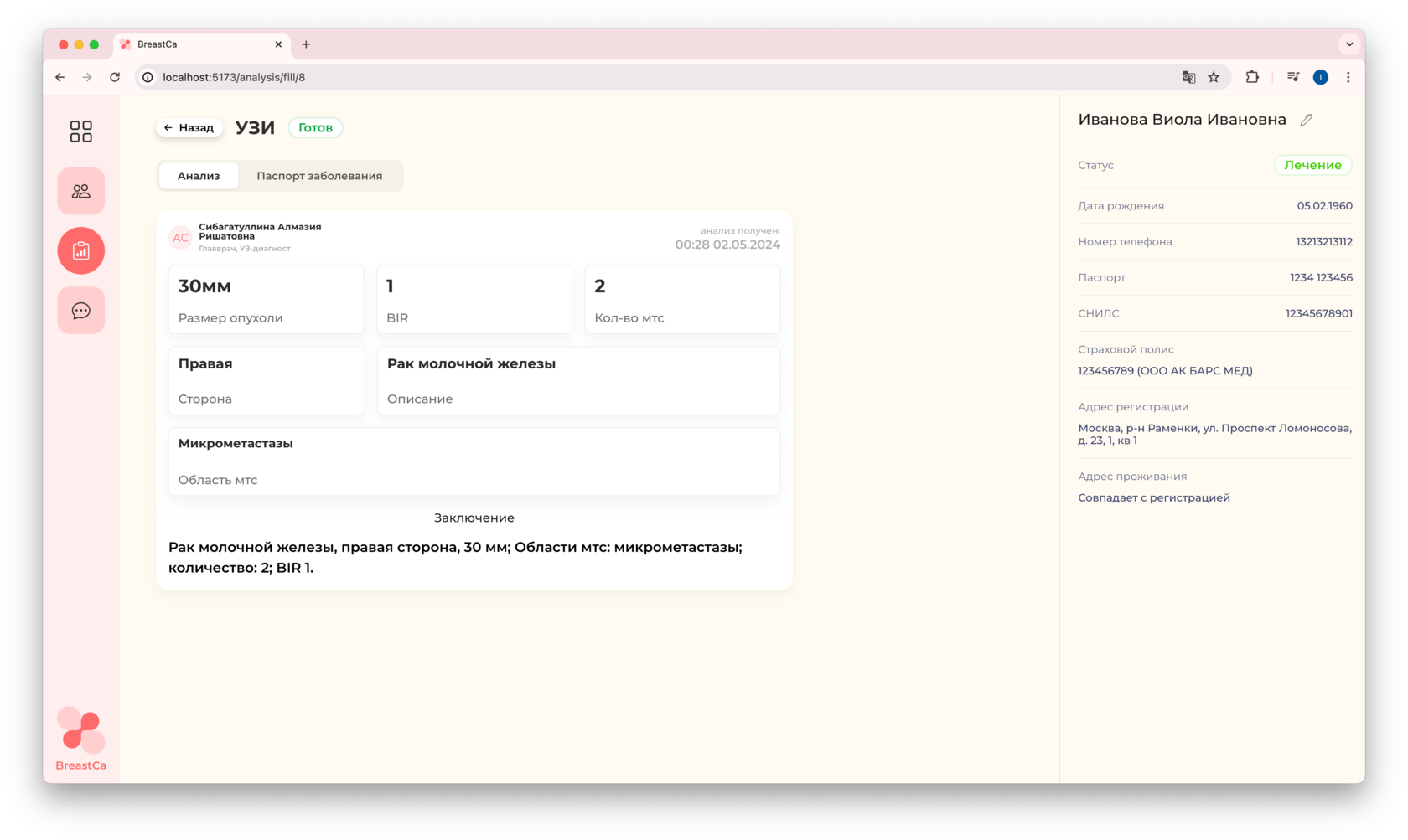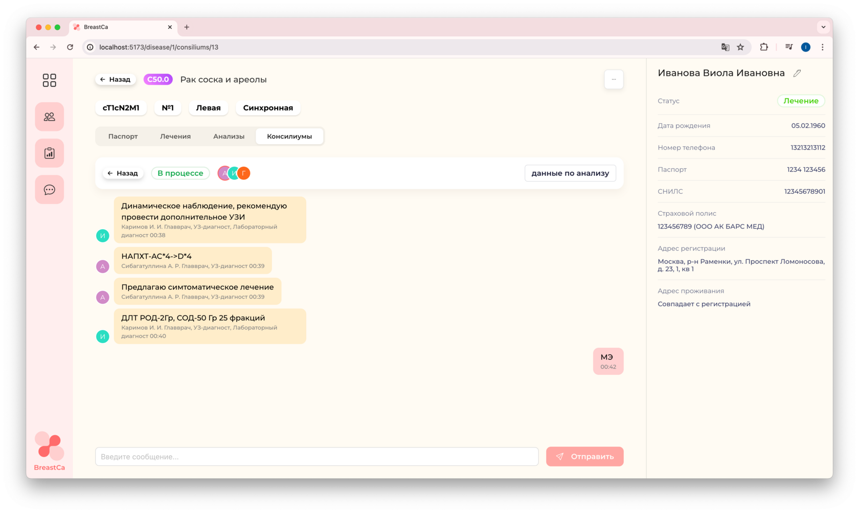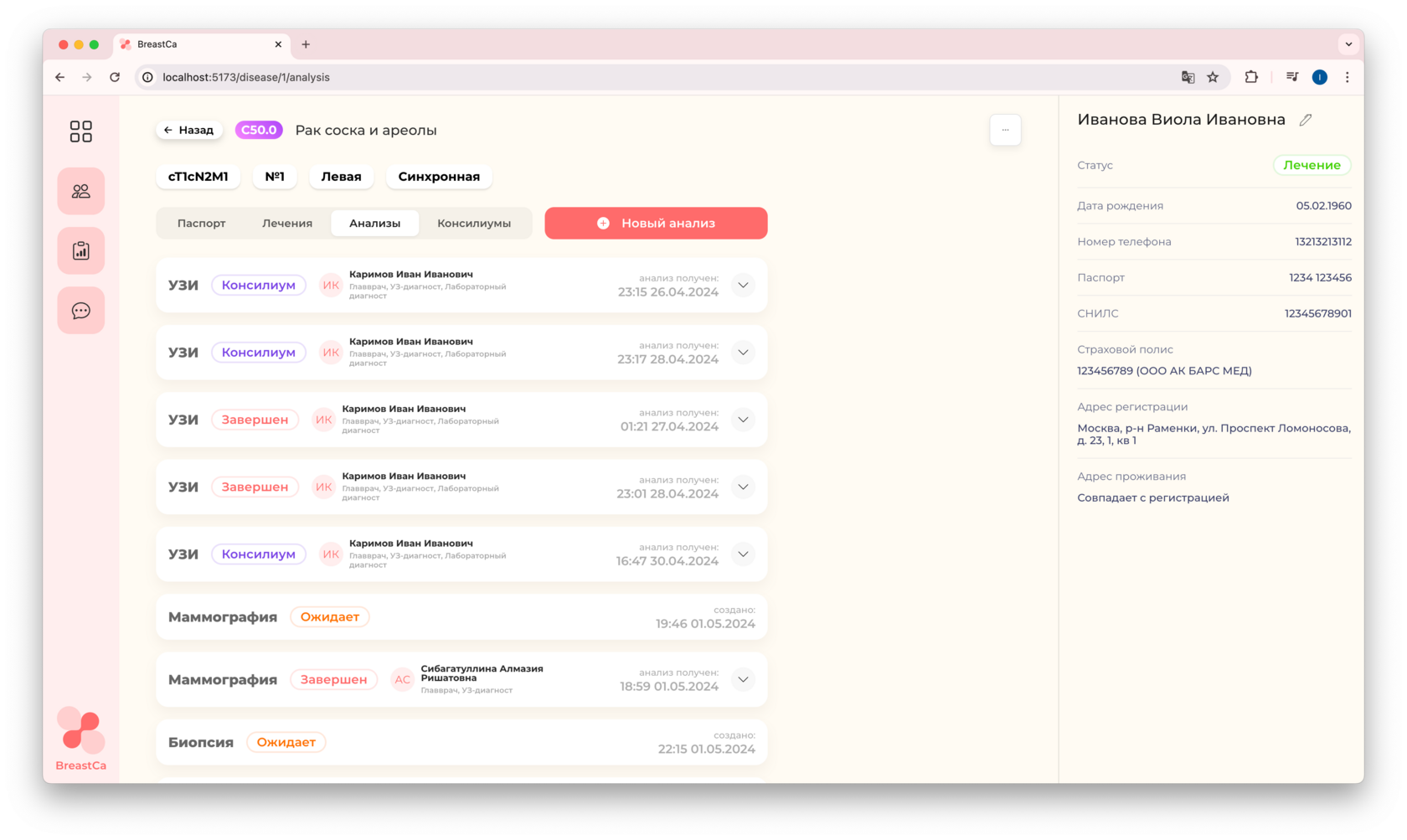 Наша платформа позволяет вести электронную медицинскую документацию и отслеживать динамику состояния пациентов в режиме реального времени. Вся информация доступна в одном месте, обеспечивая максимальную эффективность и безопасность обработки данных.